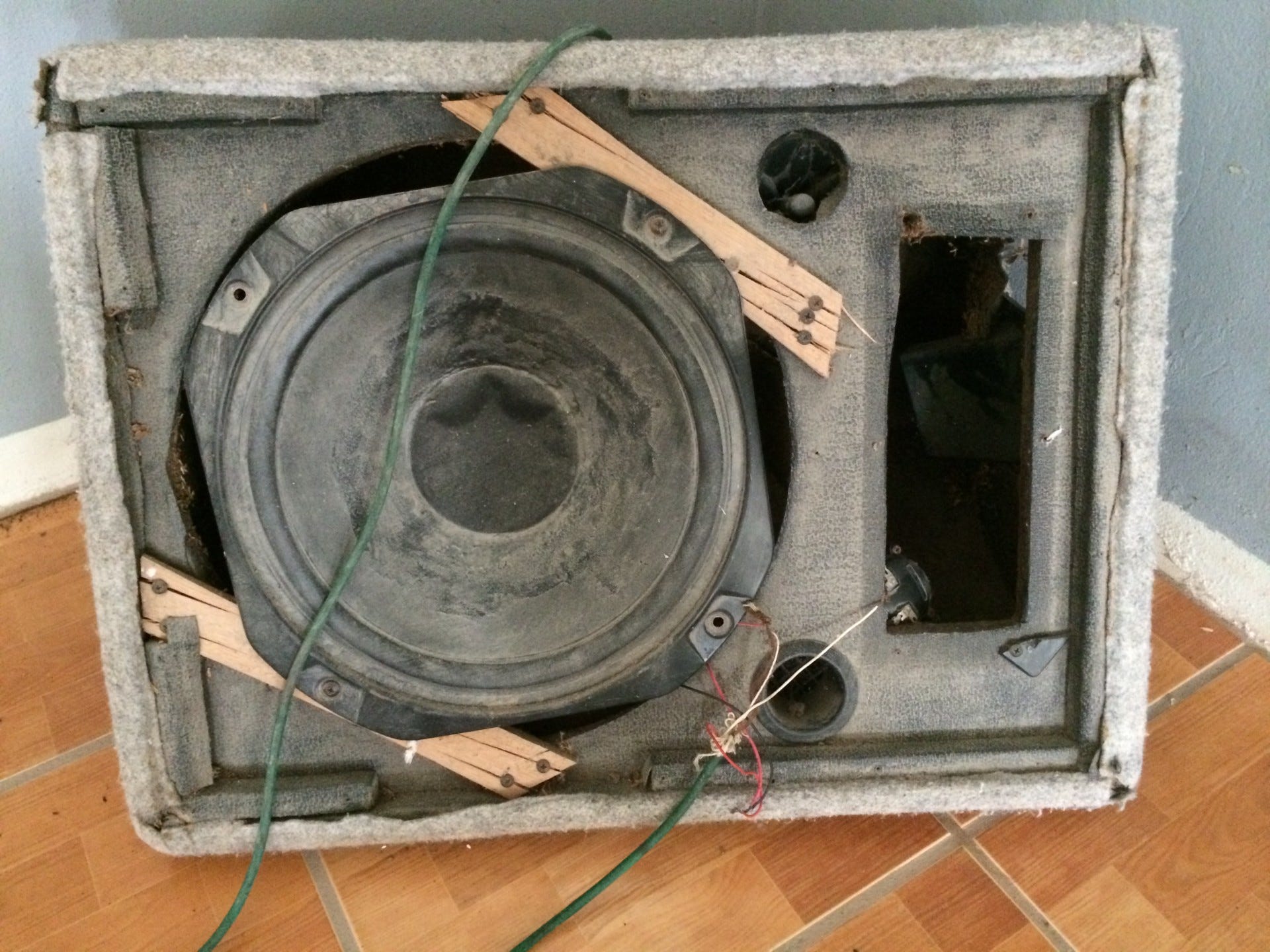 Quando uma coluna cai enquanto toca, o cone descentra antes de a caixa bater no chão. A distorção começa antes do impacto.